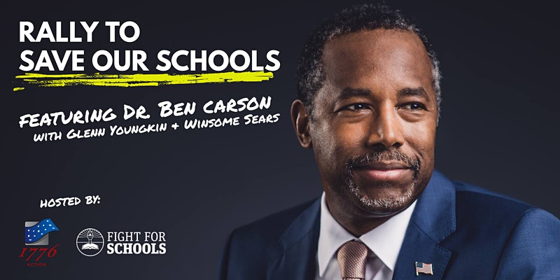 September 8, 2021, 7-9pm Lansdown Resort and Spa in Leesburg, VA Join Dr. Ben Carson, Glenn Youngkin & Winsome Sears for a special event on stopping anti-American indoctrination in K-12 schools. About this event Across America, brave parents and teachers are fighting to restore honest, patriotic education that honors our history, our values, and theContinue reading "Rally to Save our Schools (Guest: Ben Carson)"